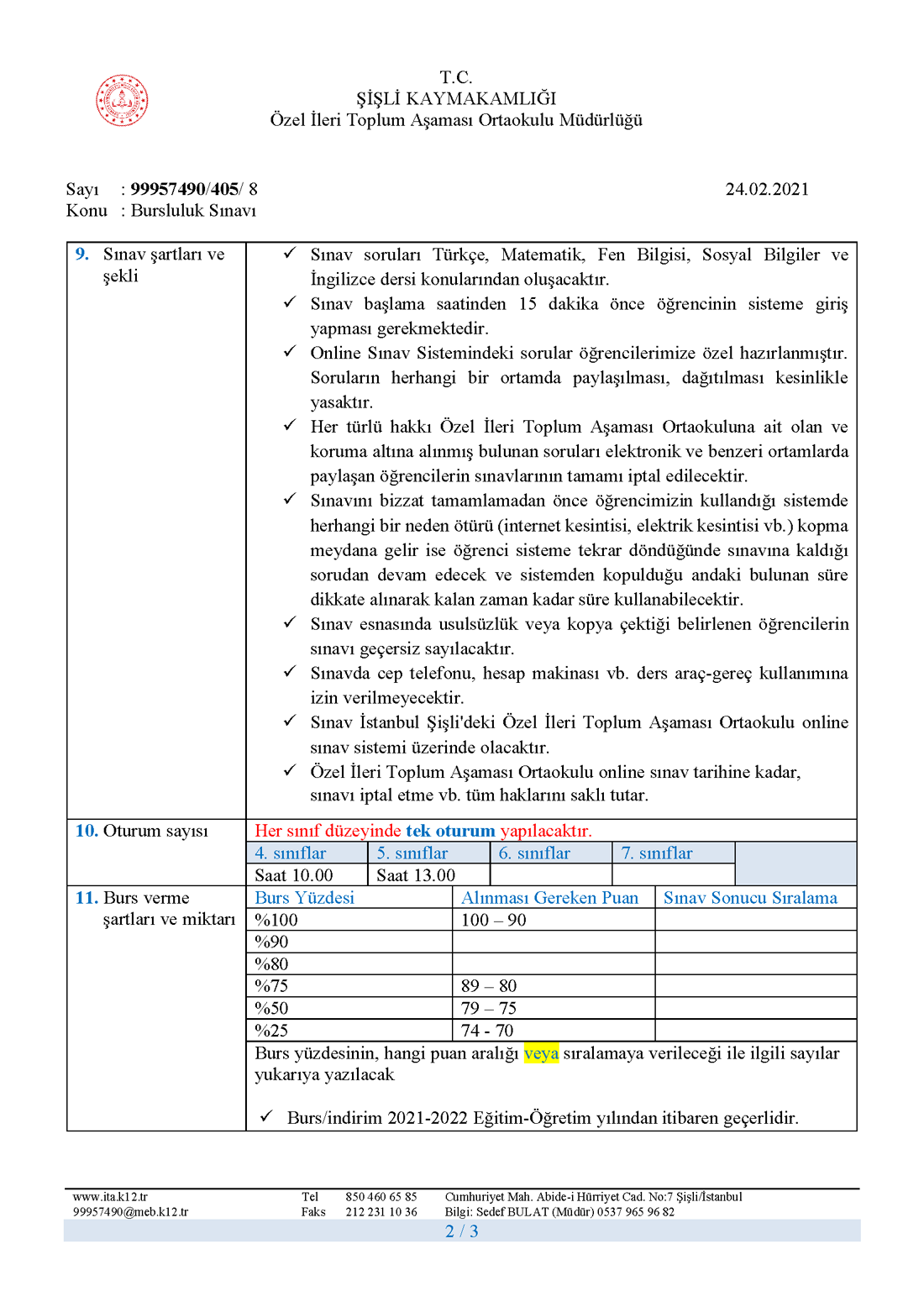 4. Sınıf Bursluluk (5.Sınıfa Aday)